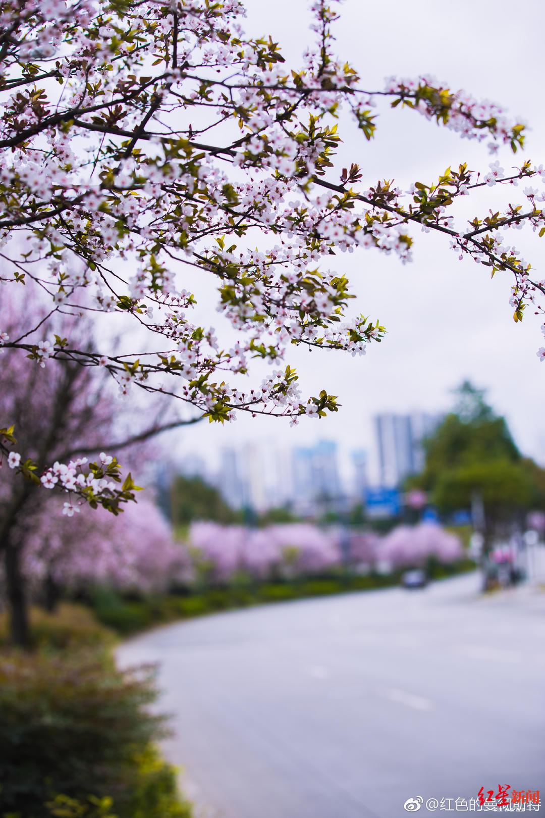 搬家后的那年春天,化迪生有一次经过锦江大道时,又看到了熟悉的白粉色花。“老朋友,又见面了。”他本想举起相机,“但那次可能时间有点晚,都快开败了。”