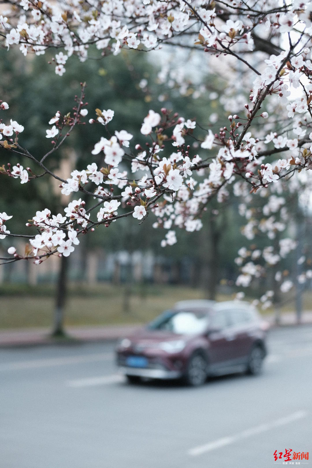 上周六,化迪生专门去锦江大道边上打望。“每棵树上都有开的,不过大多数还是花骨朵,没有成片地沿着大道绵延。”2月26日,天气不错,考虑到前面几天温度回升,27日可能还有股冷空气,化迪生决定出门。