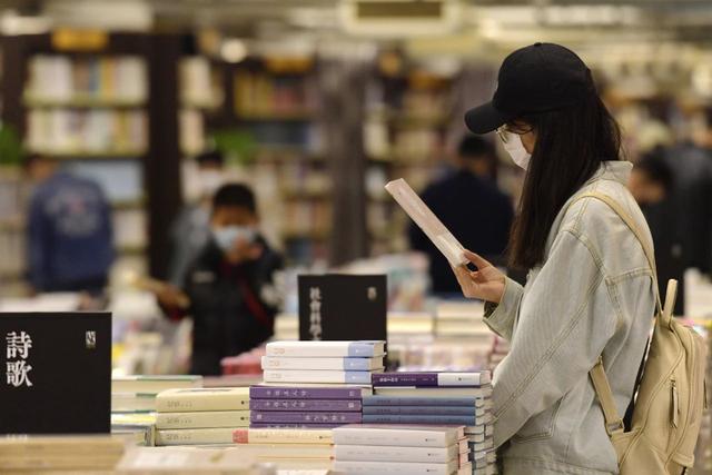 4月19日,江苏南京,读者在书店内选购图书。 杨素平摄/光明图片