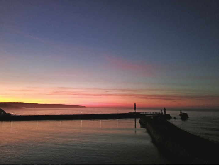在惠特比的一个月,我一直想看朝阳从修道院废墟上升起,但海雾阻隔了一切。倒是每个黄昏,残存的高墙背后会闪现诡异的紫光,映衬半边暗红色的天空,让神秘的气氛笼罩小镇。