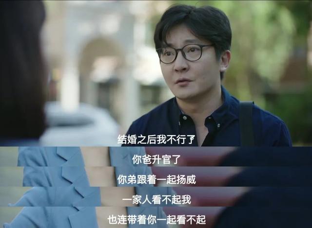 结婚之后,我不行了,你爸升官了,你弟跟着一起扬威,一家人看不起我,也连带着你一起看不起。