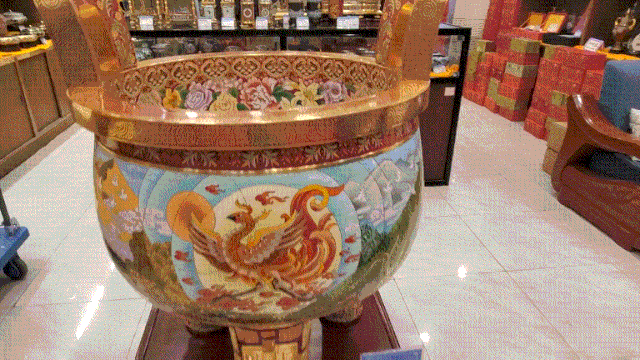 《盛世宝鼎》是北京市珐琅厂近期的代表作之一,它是新中国成立70周年的献礼之作,由中国工艺美术大师钟连盛、北京工艺美术大师李静、衣福成设计,北京市珐琅厂高级技师集体制作而成。