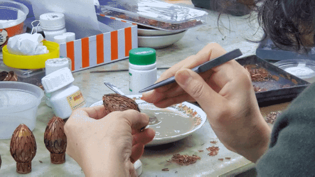 磨光可是个技术活,在将每根丝磨出来的过程中师傅们会发现前几道工序中的一些问题,并进行弥补或修复。“比如鸟的眼睛在焊接的过程中铜丝掉了,点蓝没将其点出来,就等于鸟儿没有眼睛,这就需要磨光师傅去发现和处理。”衣福成说。