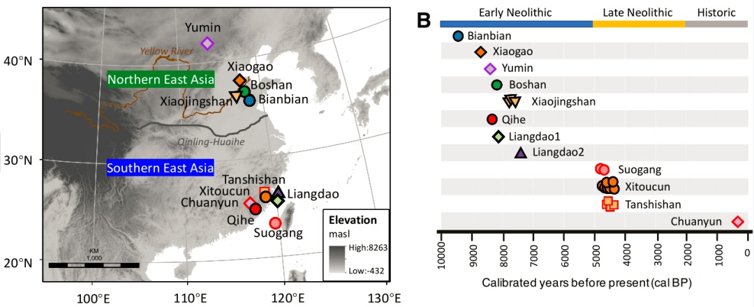 研究表明,随着时间的推移,东亚大陆南北方人群之间的差异性和分化程度逐渐缩小,这种变化暗示着自新石器时代以来南北方之间频繁的人群迁移与混合。有意思的是,在这个过程中,古北方人群成分对现在的东亚人显示出更多的影响。
