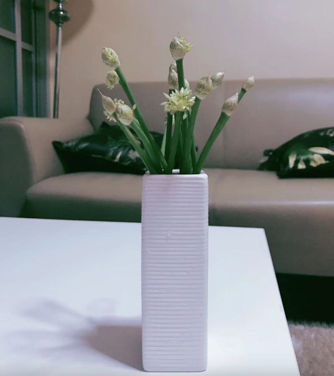 我用炒菜炒剩下的葱花插的花,葱花也是花,不但好看还能吃。