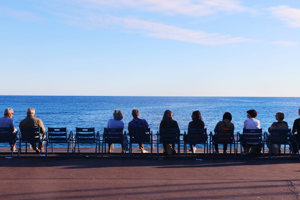 法国尼斯海边的傍晚,海很蓝,人们很自由。