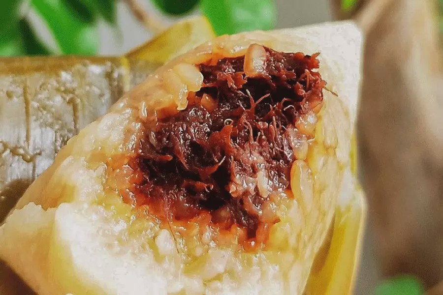 南北朝饮食经典《食次》有记,“用秫稻米末,绢罗,水、蜜溲之……以枣、栗肉上下着之遍,与油涂竹箬裹之,烂蒸。