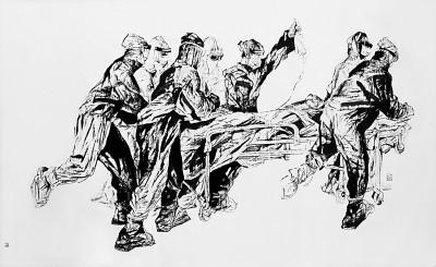 2020年初,新冠肺炎疫情突如其来,全国数万名医务人员闻令而动,驰援湖北,医者仁心,最美逆行。图为中国画《战“疫”》,再现惊心动魄的抗疫现场,致敬参加抗疫的医务工作者。殷会利画