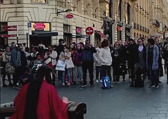 中国姑娘彭静旋,为让更多人了解中国传统音乐,在法国街头演奏古筝,吸引了众多外国友人驻足观看。