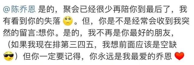 谢娜的自信,来自于对这段友情的笃信,更是对陈乔恩这个闺蜜的信任。她知道,陈乔恩那些看似埋怨的话里,藏着的是对她的思念和不舍。