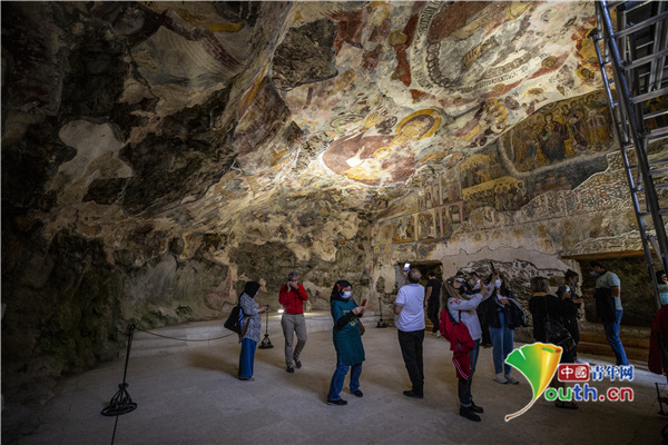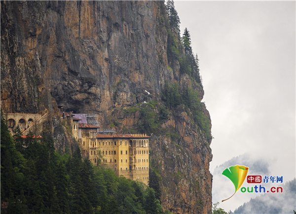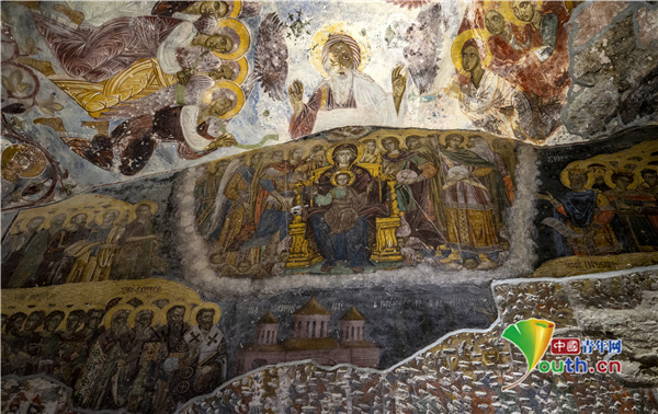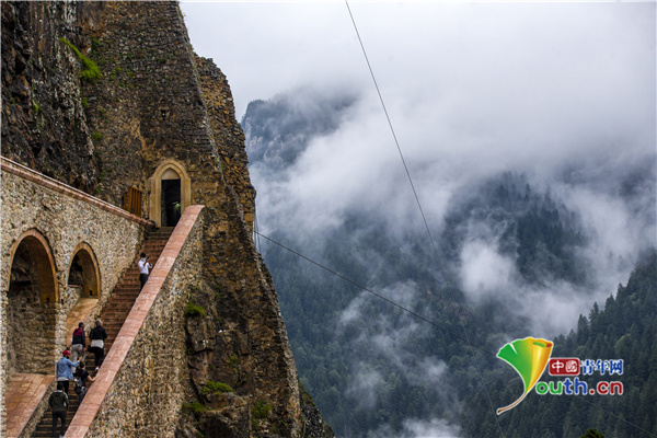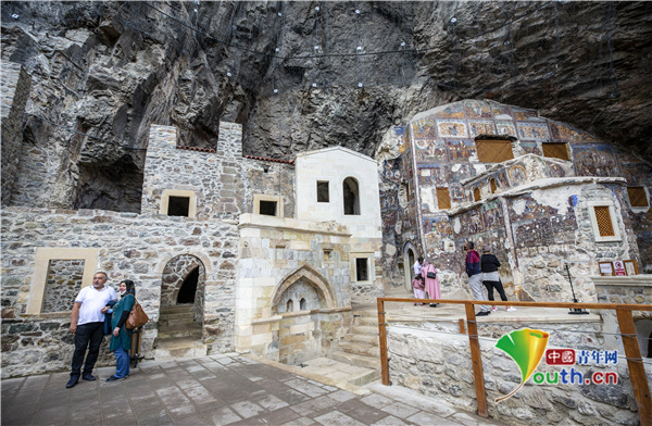 当地时间2020年8月18日,土耳其特拉布宗,苏美拉修道院位于海拔1200米的悬崖绝壁上,该修道院内拥有精美壁画。