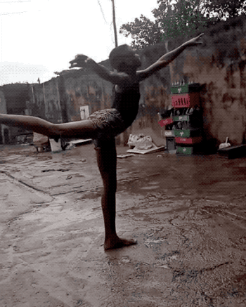 泥泞的土地上,在贫民窟长大的11岁男孩马杜,正认真地练习着舞蹈。