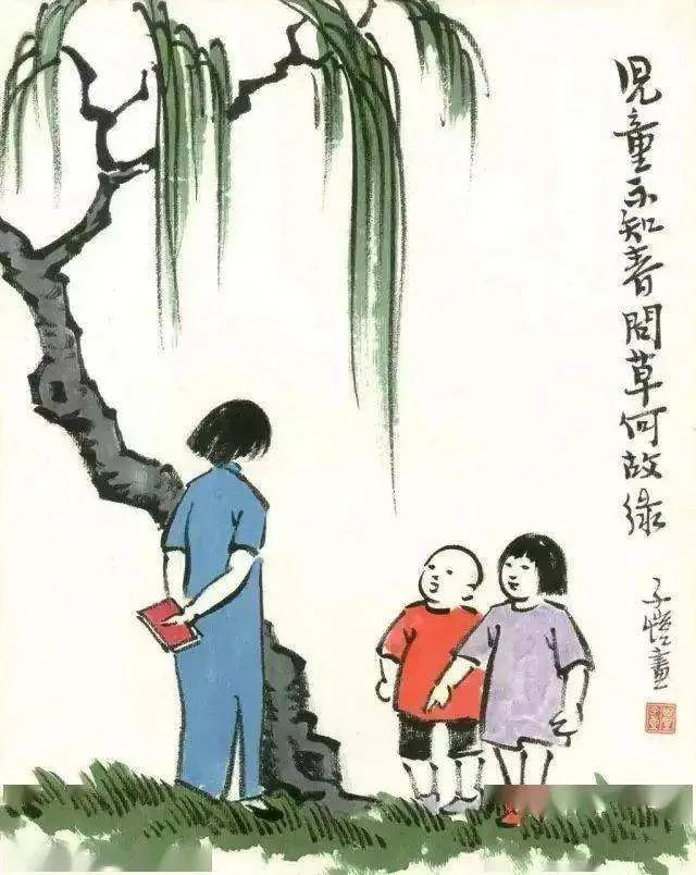 子恺漫画艺术生命长存,更主要的原因在于他彻底将漫画中国化了,简而言之即为:以诗为题,以诗入画,雅俗交融。