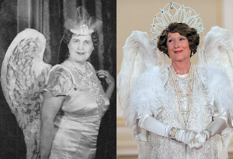 “跑调天后”弗洛伦斯·福斯特·詹金斯(Florence Foster Jenkins)是一位热爱演唱的乐盲,凭借超凡脱俗的音乐天赋在上世纪的美国音乐界名噪一时。图左为詹金斯本人,图右为梅丽尔·斯特里普在2016年上映的电影《跑调天后》中饰演的詹金斯。