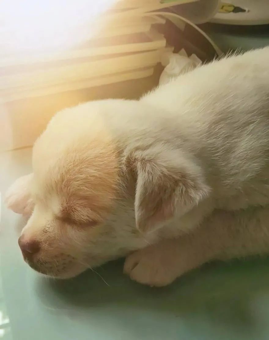 它是她人生中的第一只小狗,刚来的时候见人就躲,瑟瑟发抖,在人前连饭也不吃。