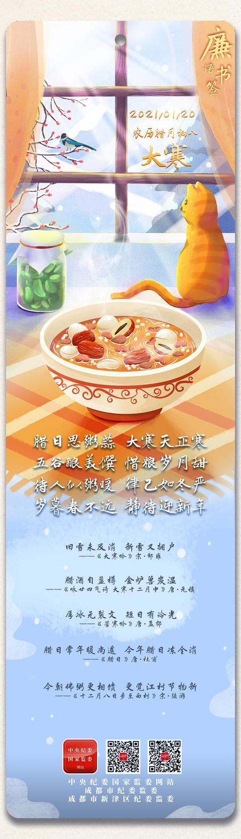 廉语书签丨大寒天寒 腊八粥暖