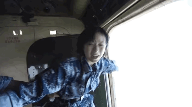 采访降落伞试伞后备队,为了让观众有更直观的感受,庄晓莹主动登上直升机,甚至将手伸出机舱外感受风速。