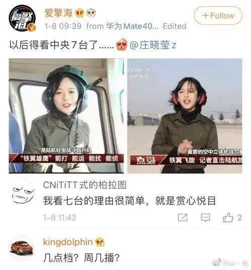 1月7日,CCTV-7国防军事频道《国防科工》的节目中,一位又飒又美的女记者庄晓莹吸引了众人的目光。