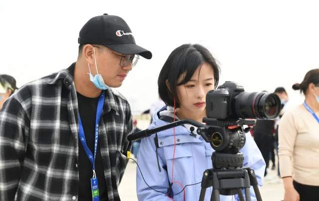 空阔的停机坪上,数辆直升机从身后呼啸而过,现场噪声之大可以预见,但庄晓莹始终微笑面对镜头,用高过飞机噪声的嗓门从容不迫地解说,口齿清晰,体态镇定自如。