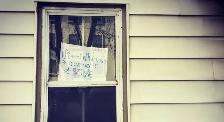 偶然的善举:作者 Jim Davies 在渥太华拍下了这张照片。橱窗上的标牌上写着:“社交距离是爱的表现。”