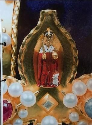 皇冠上有5个与皇室息息相关的装饰百合花,最初装饰有三位基督像,一位圣乔治和一位圣母玛丽亚,还有婴儿耶稣。