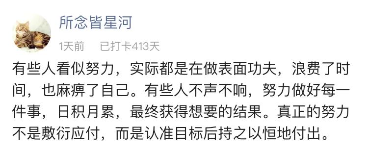 小椰子:“努力”从来都不是给别人看的。有时间来浪费做些形式主义,不如好好沉淀下来,靠实力让大家记住自己。