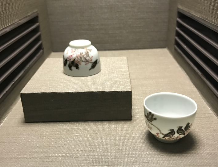 “明看成化,清看雍正”,这对收藏在台北故宫博物院的珐琅彩鸲鹆秋光图杯,向我们展示了雍正的珐琅彩瓷之美。