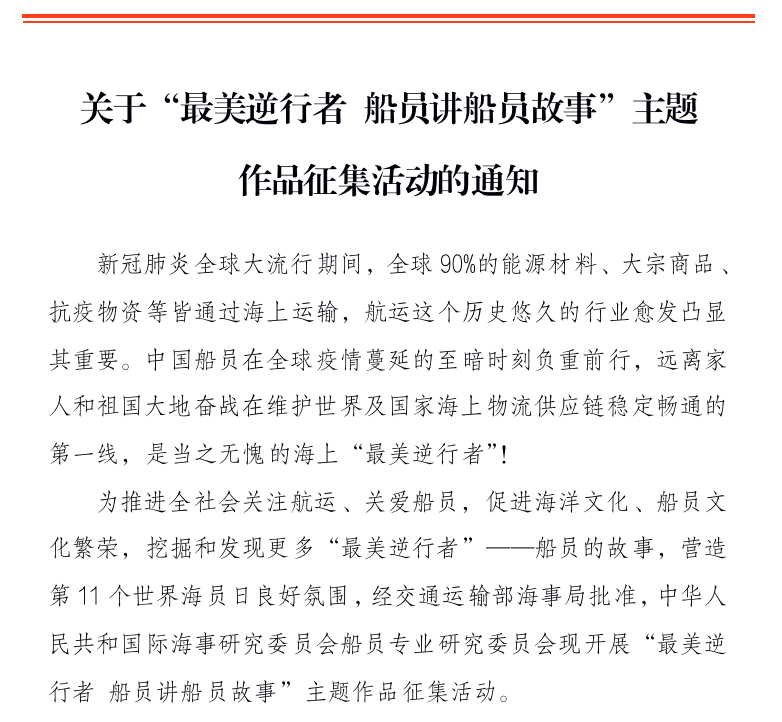 seafarers1125@163.com,并在邮件主题注明“最美逆行者 船员讲船员故事”