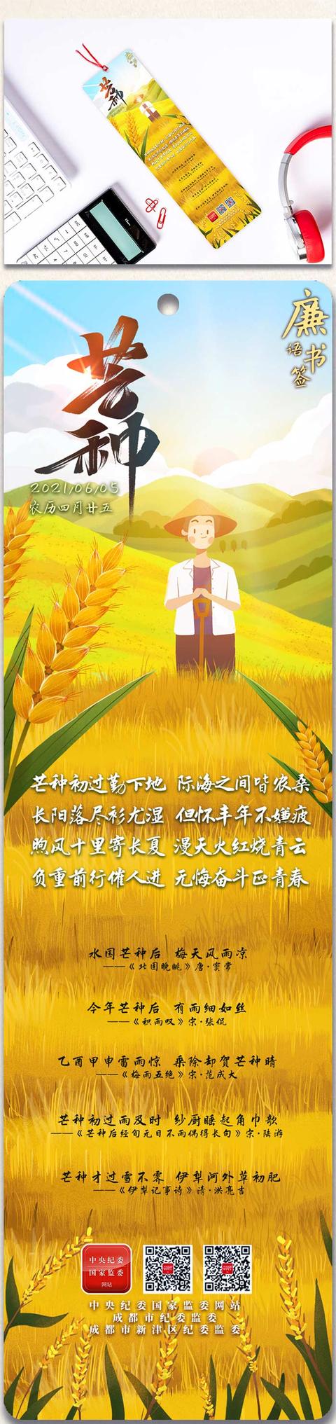 手绘·廉语书签丨芒种:连收带种贵在勤