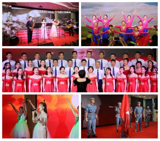 弘扬红色旋律,共唱党的赞歌。文艺汇演舞蹈《“疫”路前行》致敬最美逆行者。电吹管演奏《那支山歌我还在唱》,歌舞表演《幸福中国一起走》《再唱山歌给党听》《花儿为什么这样红》,走秀《灯火里的中国》,歌曲联唱《唱支山歌给党听》《春天的故事》《我们就是中国》《走向复兴》等各类节目精彩纷呈,赢得现场观众阵阵掌声,将现场气氛推向高潮。