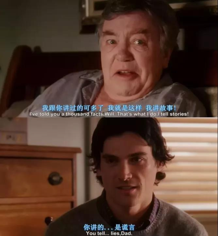 儿子才终于恍然大悟:原来,父亲讲的故事虽然有夸大的成分,但他始终能分清虚幻与真实。而他对母亲的爱,更是从未改变。