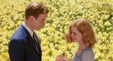 美丽的花海中,爱德华向桑德拉表达了自己的深情,桑德拉羞涩地笑了。