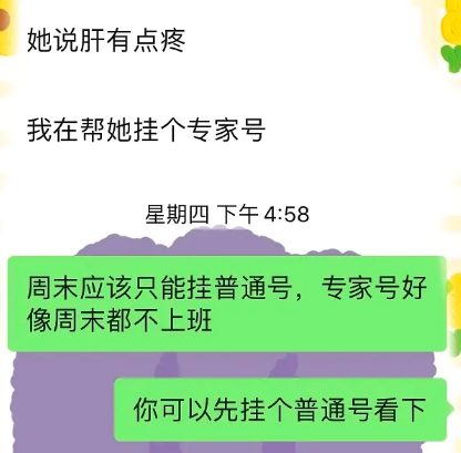 周四晚上,男生说:“她说肝有点疼,我在帮她挂个专家号。”