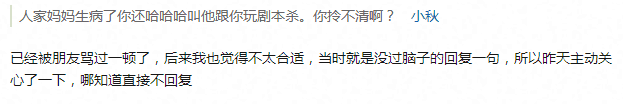 有人怼她,“人家妈妈生病了,你还哈哈哈叫他跟你玩剧本杀,你拎不清啊?”