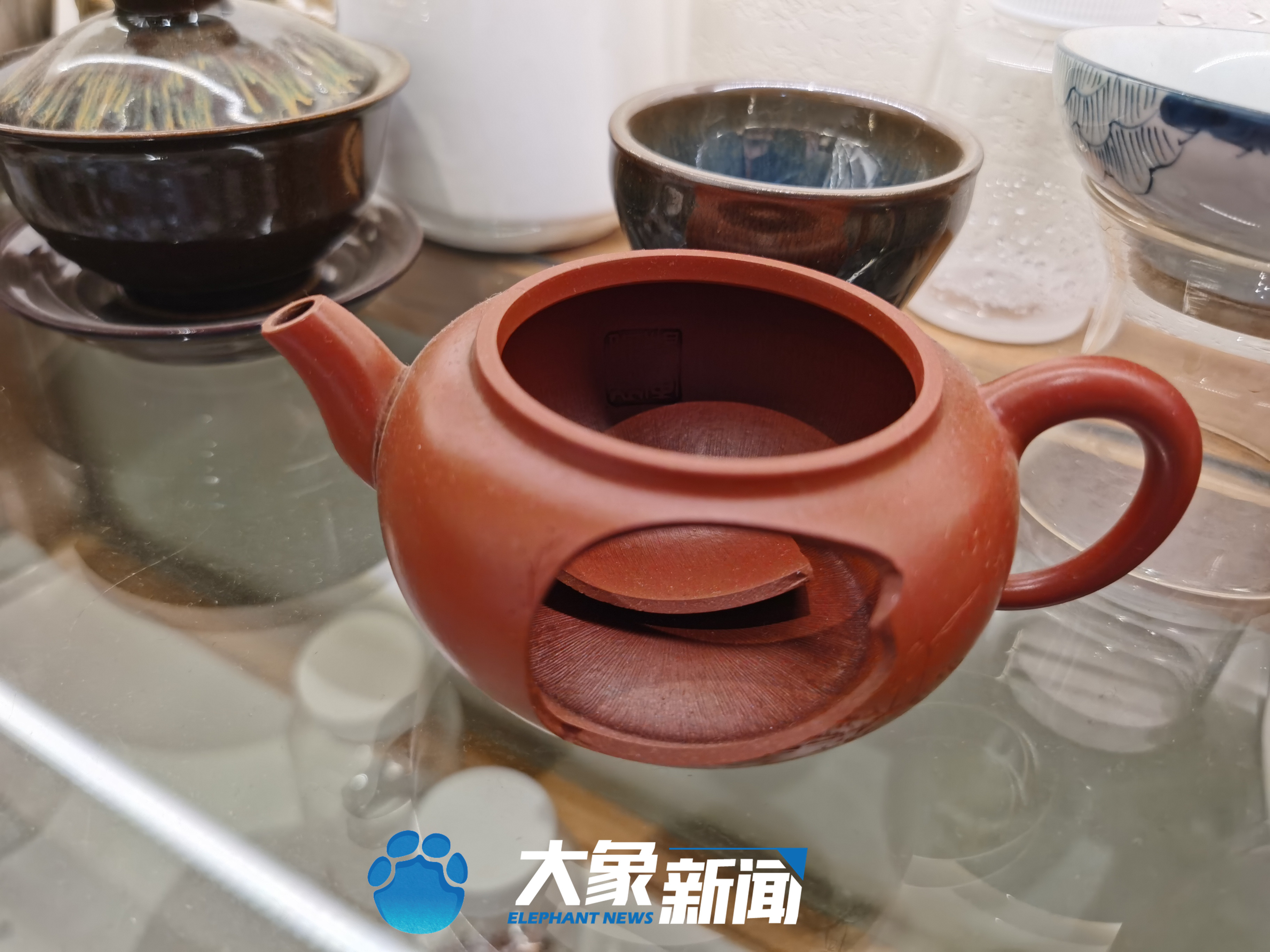 有一次,耿建华拿这把壶的时候手没拿稳,壶盖掉了下来,摔破了一点。这可怎么办?