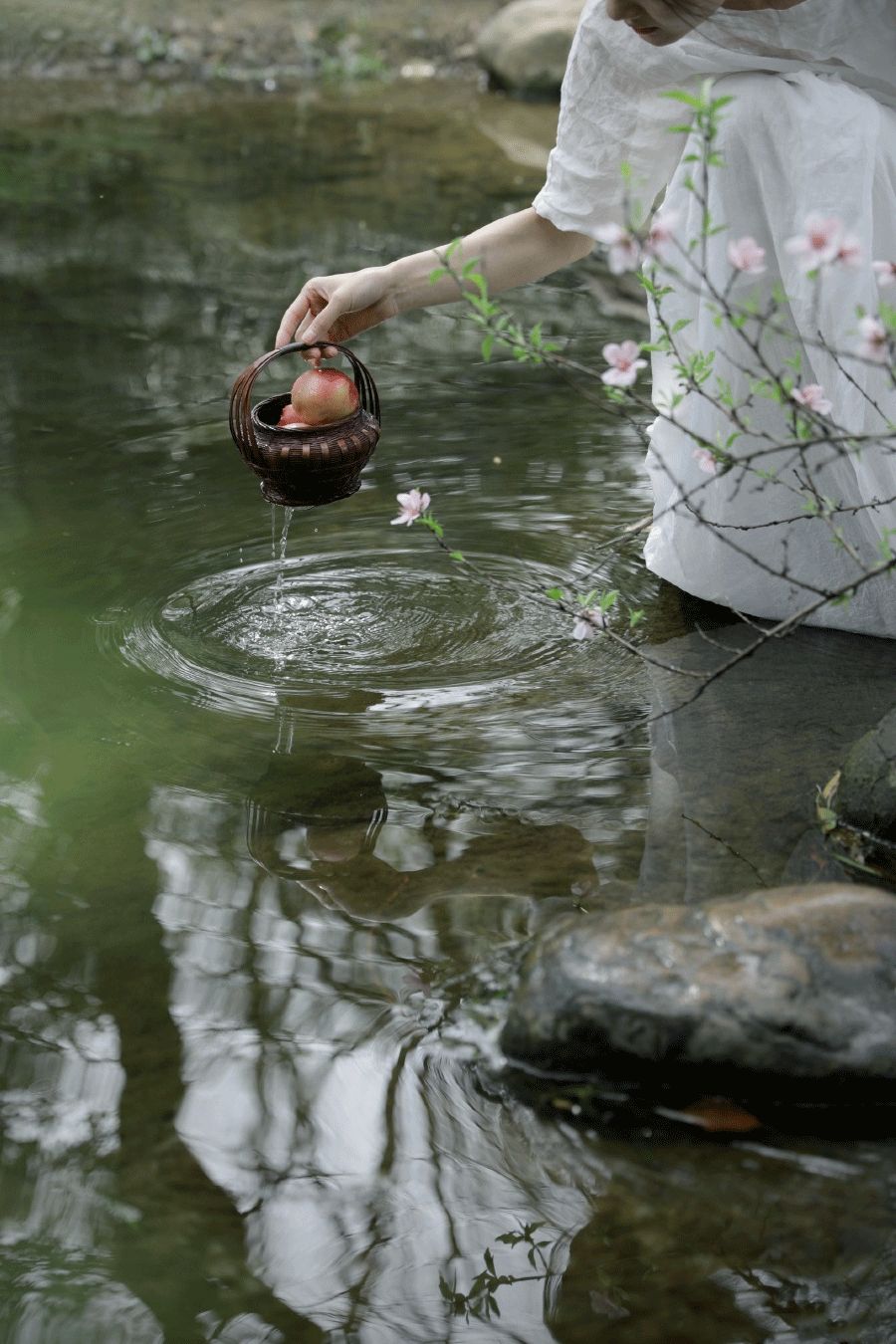 自先秦时代开始,人们都会在上巳节这一天进行““祓(fú)禊 (xì)”。他们换上轻便的春日新装,结伴去往春色怡人的河溪春水边。