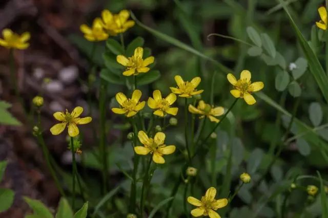 毛茛科是我最喜欢的类群,这个科里基本就没有颜值差的花,并且普遍带毒,都是“蛇蝎美人”。猫爪草(Ranunculus ternatus)喜欢在山林间阴蔽处成片开放,但花期很短,具有春季林下植物的特征:这个星期去看到花,下个星期可能就只剩流星锤一样的聚合果了。它的基生叶形似猫爪,但不是很好找。