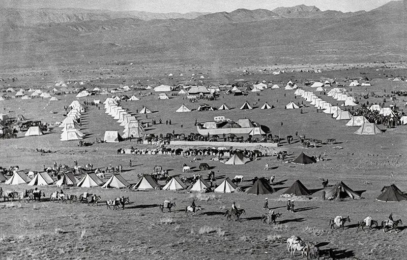为隆重欢迎九世班禅莅临拉卜楞寺,七八万藏民在广阔的甘家滩草原上先期搭了数百顶花白帐房,使此处成为一座临时帐篷之城