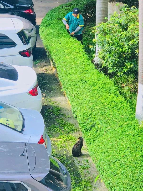 站在办公室偶然看到的,喵星人在春天的气息里驻足,似乎在监督清洁工的工作,人与动物的和谐共处让春天更加明媚和温情。