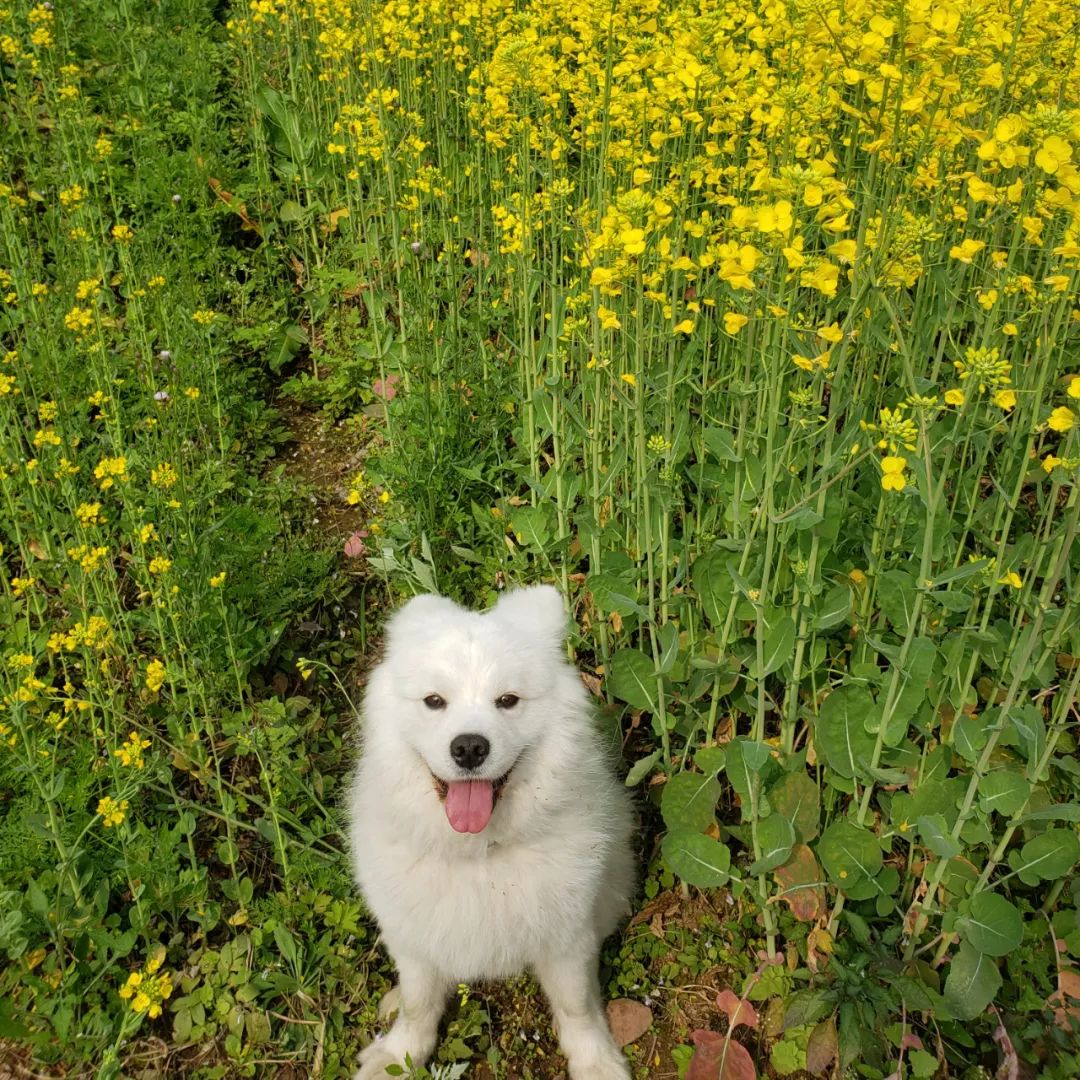 给养在村里的狗狗洗了一个澡,洗完澡带它去油菜地里拍照。狗狗真的好治愈。