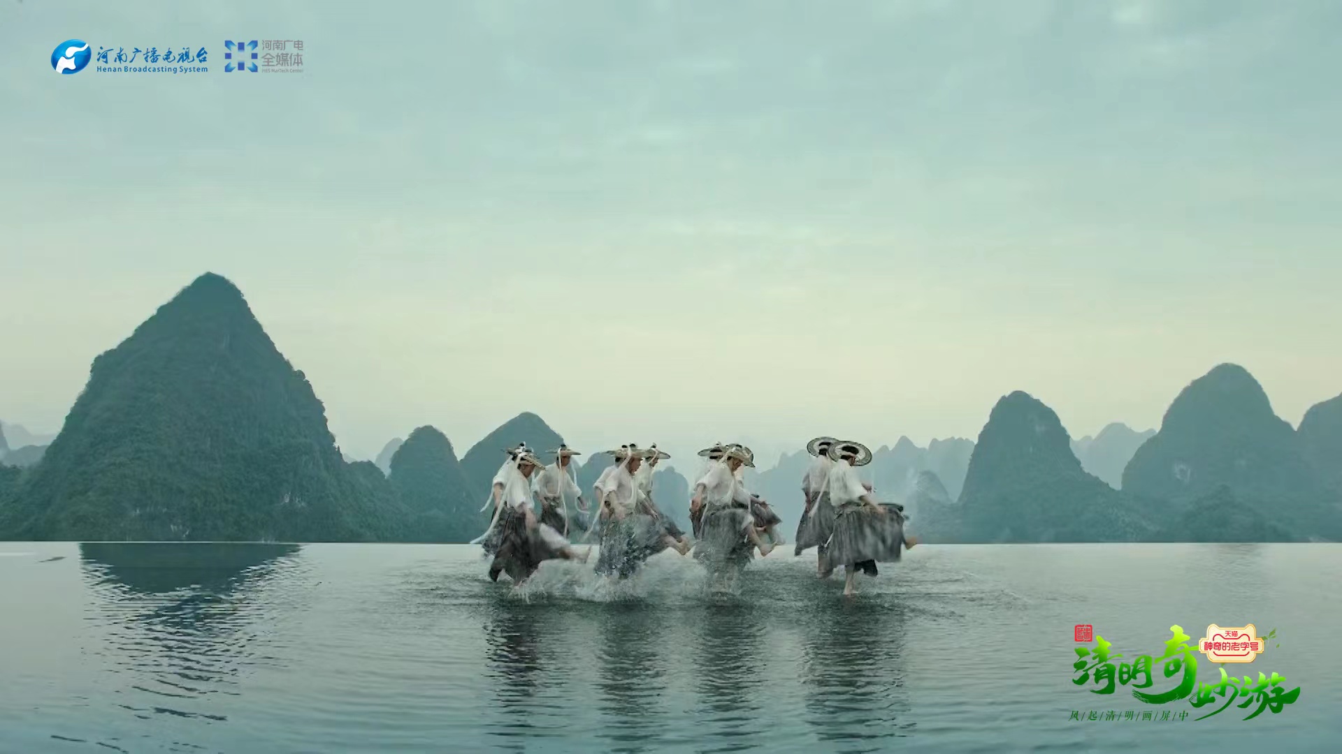 答:哈哈,网友们特别可爱。其实我觉得清明对于我来说有一种淡雅清新文艺的感觉,整个视觉上我就想让它回归自然,苏轼不是说“正是一年春好,近清明”,就是春天的感觉,一开始就把基调定成文艺、淡雅、清新。我个人可能也比较偏一些宋代美学的审美,我就要求在整个画面中有中国山水画的风格,比如说留白,比如宋代这种美学的对称,包括在颜色的基调上,确实会有一些要求。