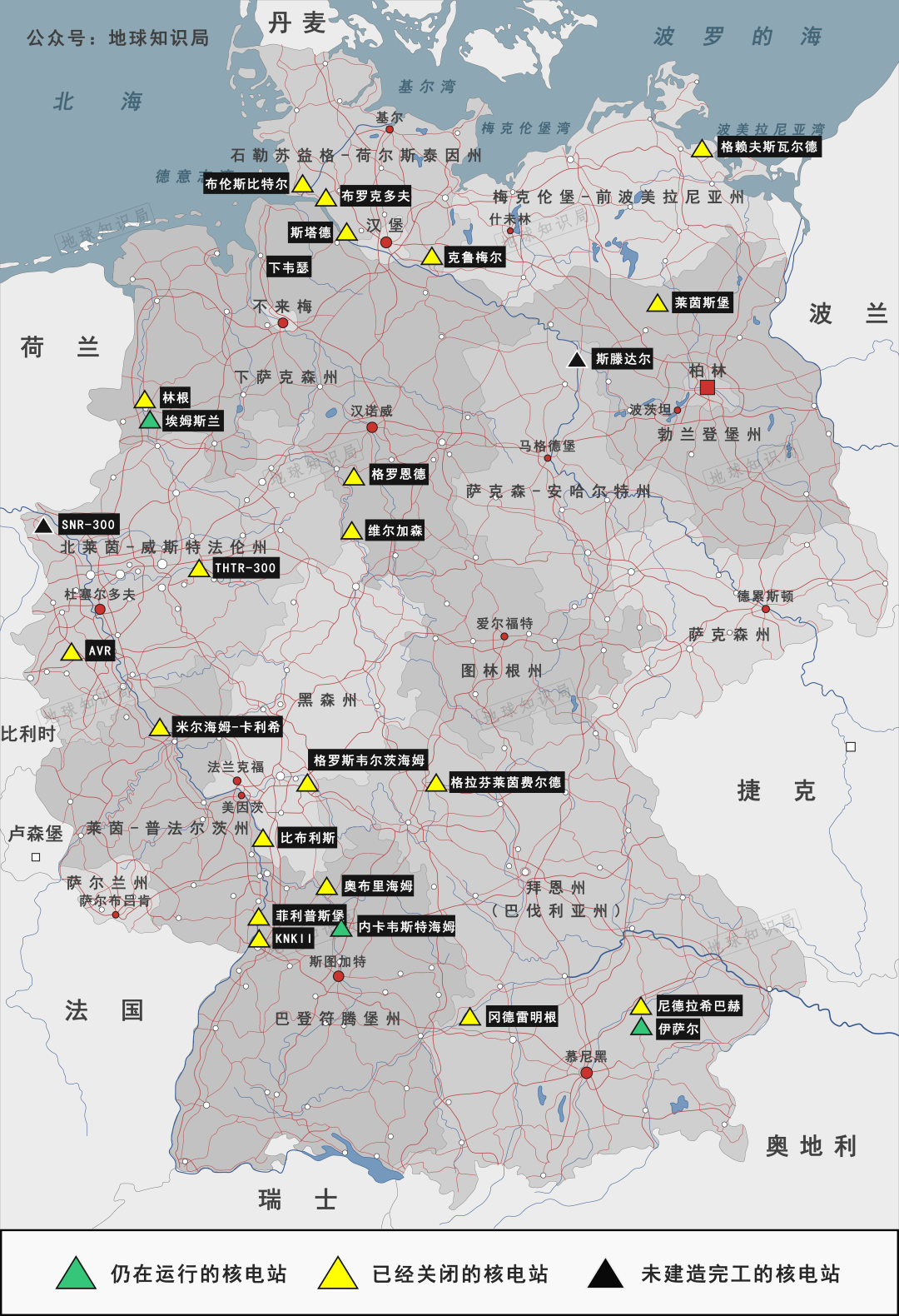 距今为止,德国全境原本的17座核电站