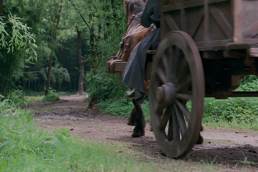 他命人把马车车抽两端凸出的部分锯掉,按上了铁箍,然后才举家出发。
