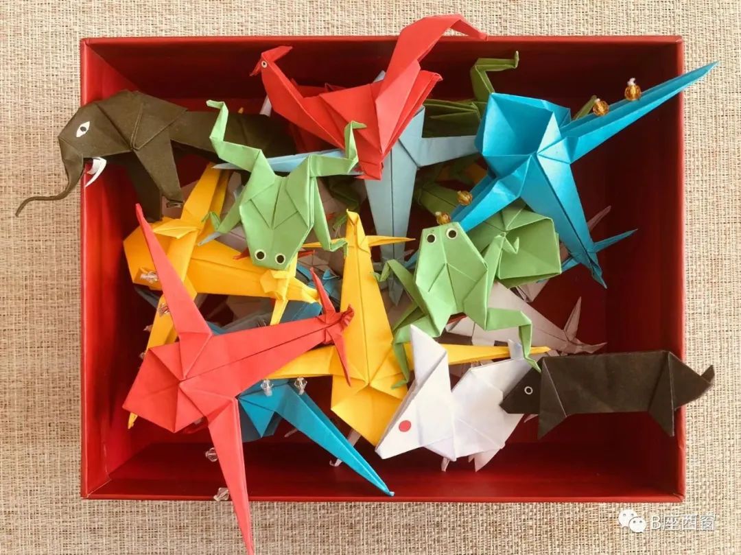我好奇,一打开就愣住了,里面装满了五颜六色的折纸——草绿的青蛙、墨黑的大象、各色的飞机……机翼还装饰着两颗透明的玻璃珠作灯。漂亮极了,简直就是艺术品——老爸知道我用这奖励学生,就特地折了一大盒让儿子带来。