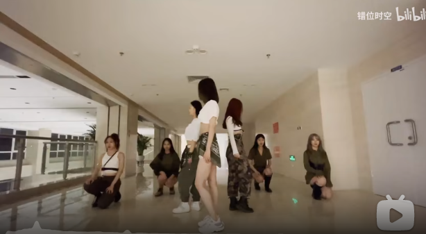 视频里是7个女生,跳着时下流行的女团舞,整齐划一、走位默契。