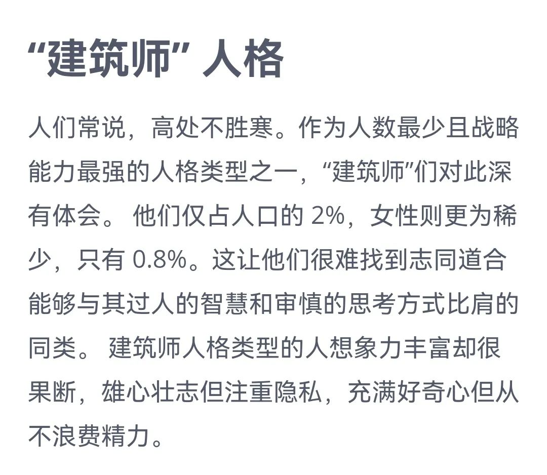 我们不应该把自己性格中的缺点都推给MBTI测试,也不该把对别人的看法固化在一套性格测试中。毕竟,人随时都应该相信自己的自由意志和主观能动性。