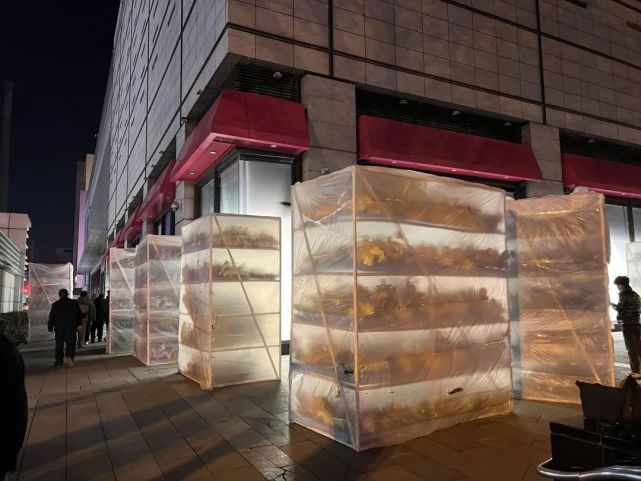 除了花材紧缺,还有“冷”这个问题。恰逢年关,气温骤降,工厂的大厂房里还没有取暖设施,连续2周作业,厚重的羽绒服+雪地靴+羊绒裤+暖宝贴,成了Jude每天干活儿的装备,忙碌到凌乱,形象全无。