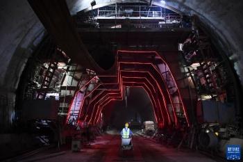 4月3日,施工人员在渝湘高铁重庆至黔江段站前4标长塝隧道作业。