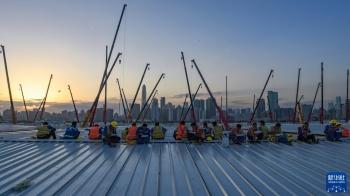 4月7日,位于香港落马洲河套地区的中央援港应急医院项目一期工程按期完工并通过验收。两万余名来自五湖四海的建设者发扬“同胞有难、义不容辞”的精神逆行出征,经过30天争分夺秒日夜奋战,在一片荒滩上建起“生命之舟”。