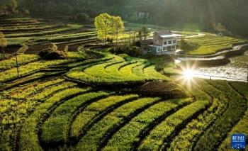 近日,陕西省安康市汉阴县漩涡镇1.2万亩凤堰古梯田在油菜花的映衬下,满目锦绣。有200多年历史的凤堰古梯田,是目前秦巴山区发现面积最大、保存最完整的清代梯田。
